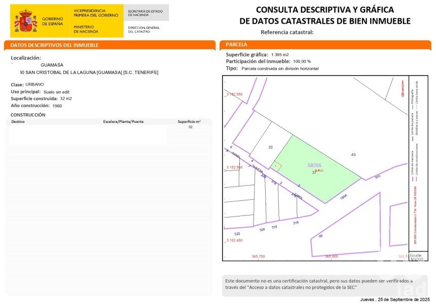 Surface de terrain : 1 395 m²
