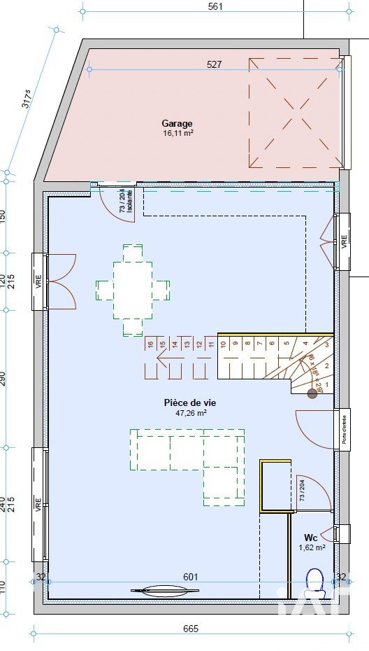 Surface de terrain : 366 m²