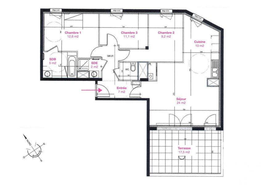 Appartement, 3 chambres, terrasse