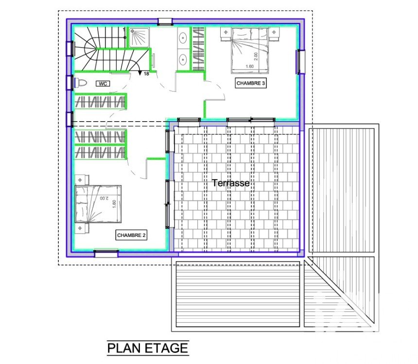 Apartment, 2 bedrooms, terraces