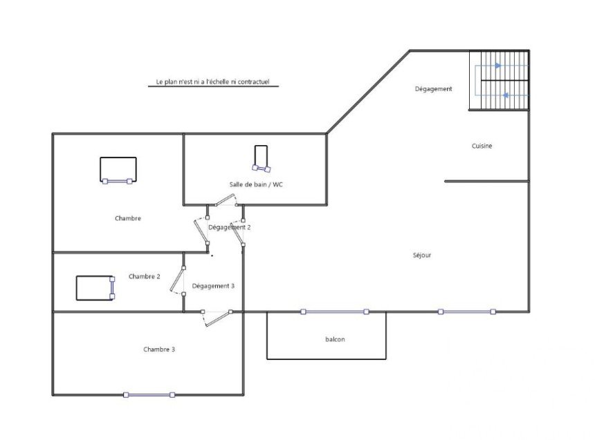 Apartment, 3 bedrooms, top floor